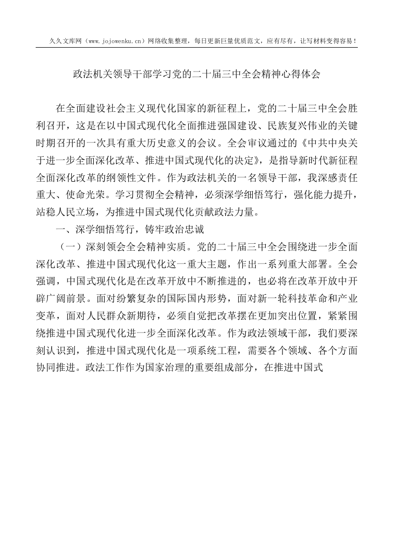 政法机关领导干部学习党的二十届三中全会精神心得体会