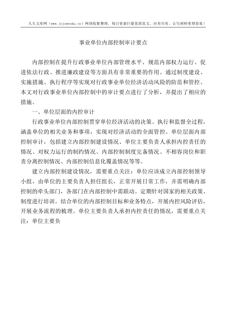 首页公文大全计划方案、要点事业单位内部控制审计要点