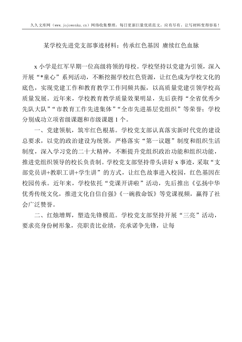 某学校先进党支部事迹材料:传承红色基因+赓续红色血脉