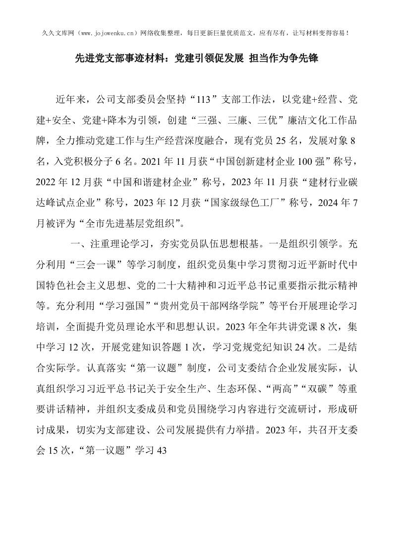 首页公文大全心得体会先进党支部事迹材料:党建引领促发展 担当作为争先锋