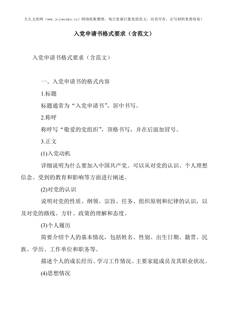 入党申请书格式要求(含范文)