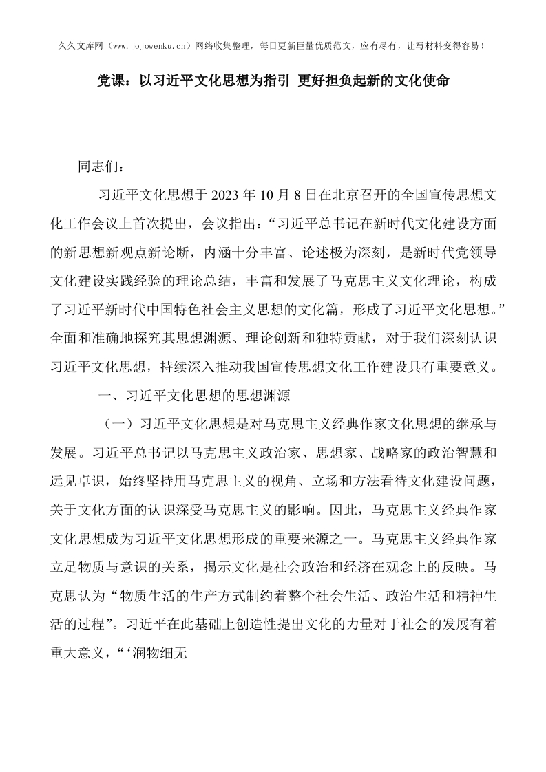 党课:以习近平文化思想为指引 更好担负起新的文化使命