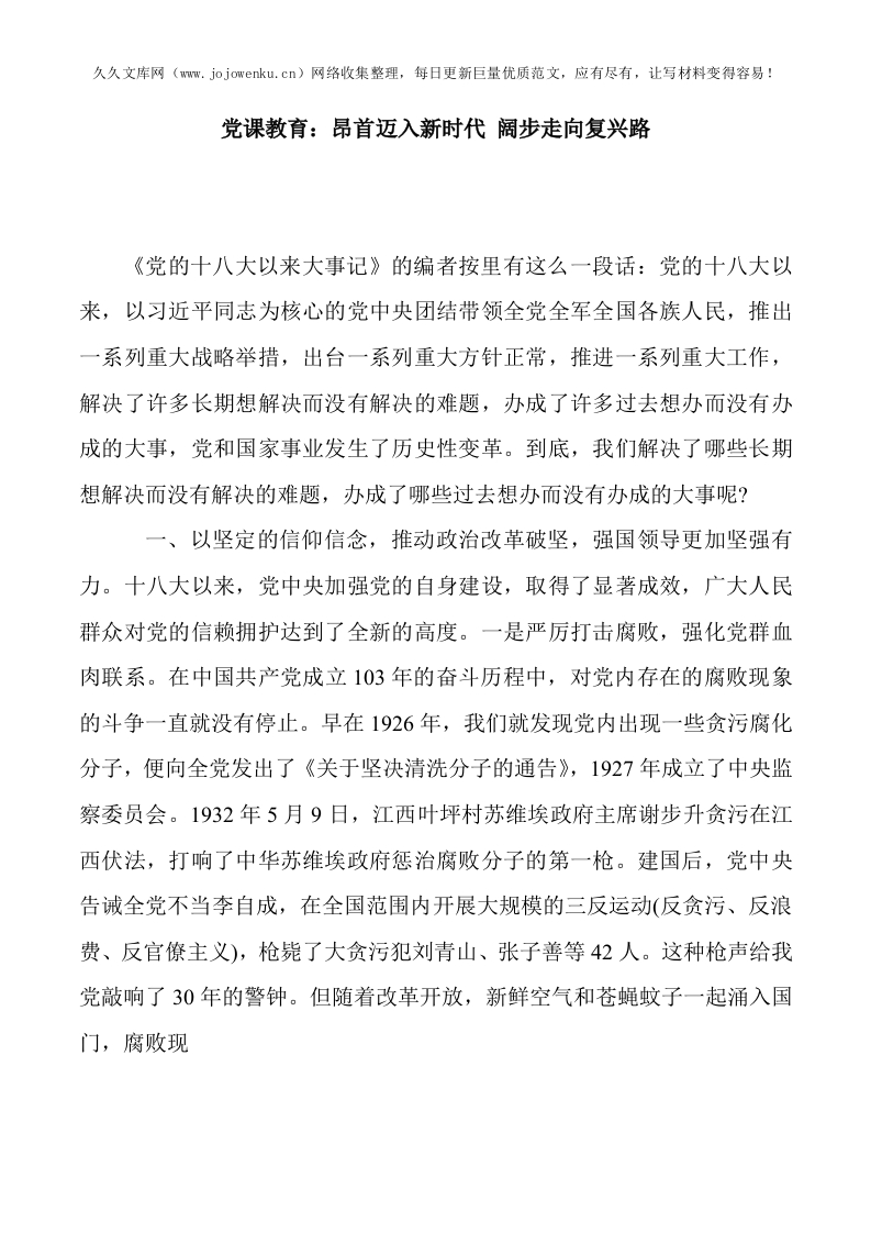 首页公文大全党课讲稿 党课教育:昂首迈入新时代 阔步走向复兴路