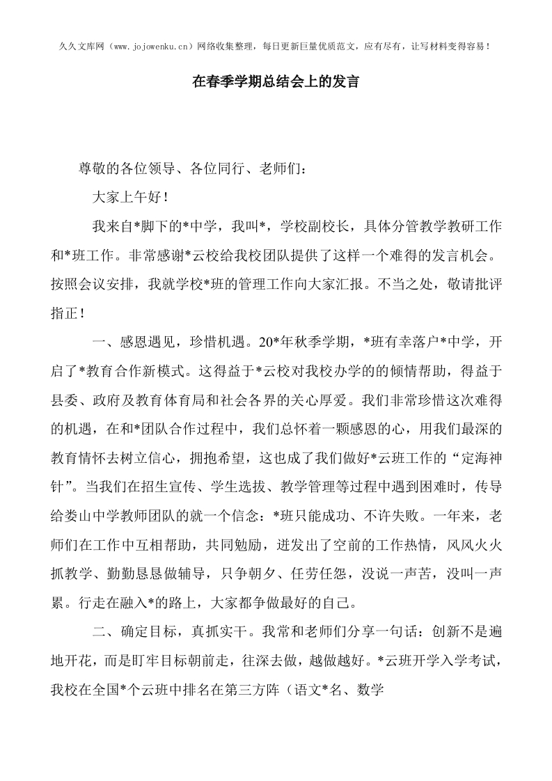 首页公文大全总结报告总结在春季学期总结会上的发言(1)