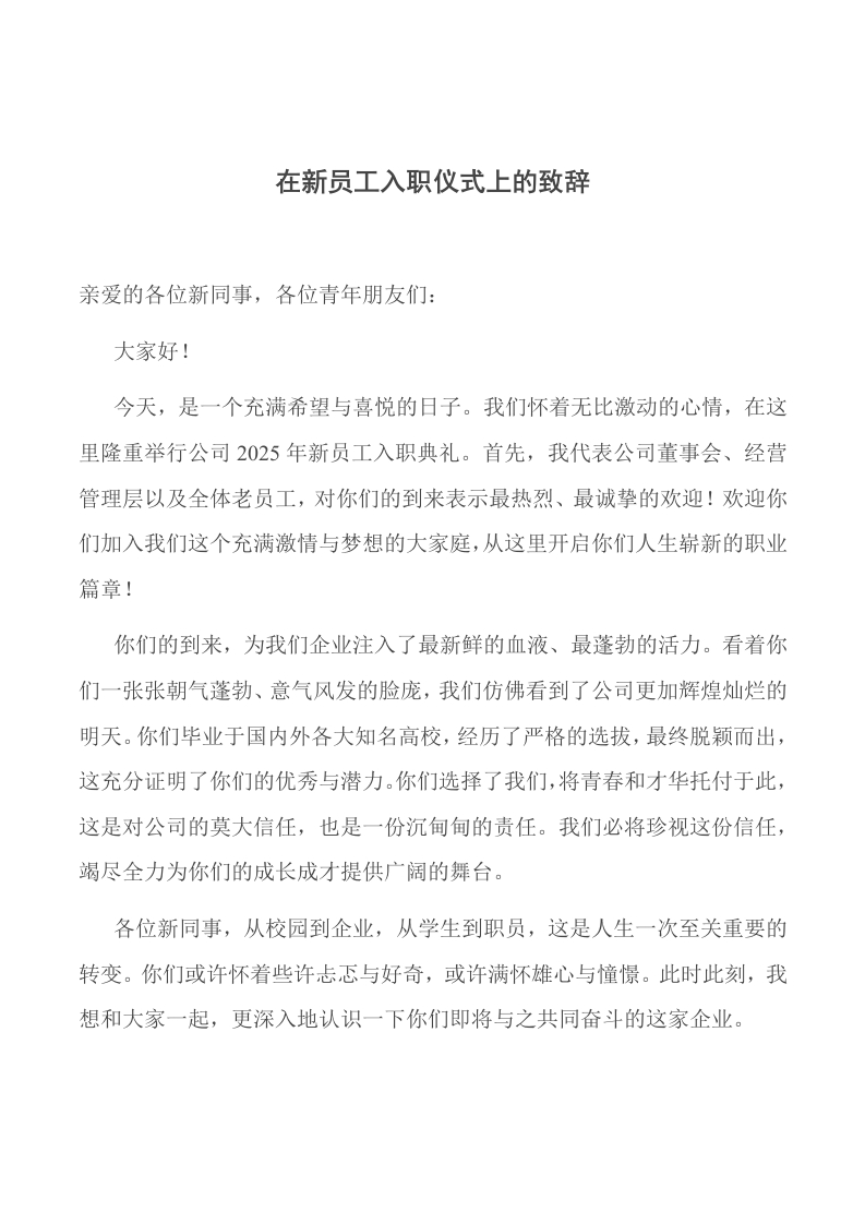 首页公文大全讲话发言致辞在新员工入职仪式上的致辞