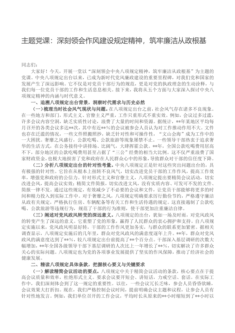 主题党课:深刻领会作风建设规定精神,筑牢廉洁从政根基