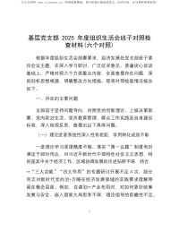 基层党支部2025年度组织生活会班子对照检查材料(六个对照)
