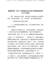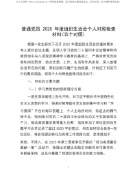 普通党员2025年度组织生活会对照检查材料(五个对照)