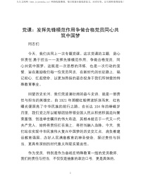 党课:发挥先锋模范作用 争做合格党员 同心共筑中国梦