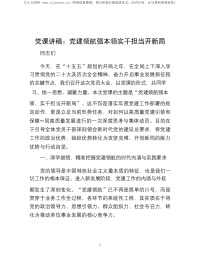 党课讲稿:学思践悟第五卷 凝心铸魂开新局 担当作为建新功