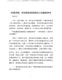 党课讲稿:科技赋能强国路 初心如磐践使命