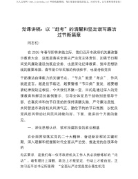 党课讲稿:以“赶考”的清醒和坚定谱写廉洁过节新篇章