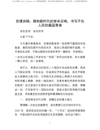 党课讲稿:拥抱新时代的使命召唤,书写不负人民的藏蓝青春