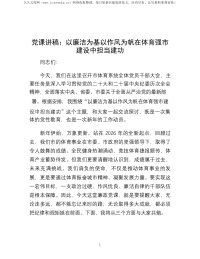 党课讲稿:以廉洁为基以作风为帆 在体育强市建设中担当建功